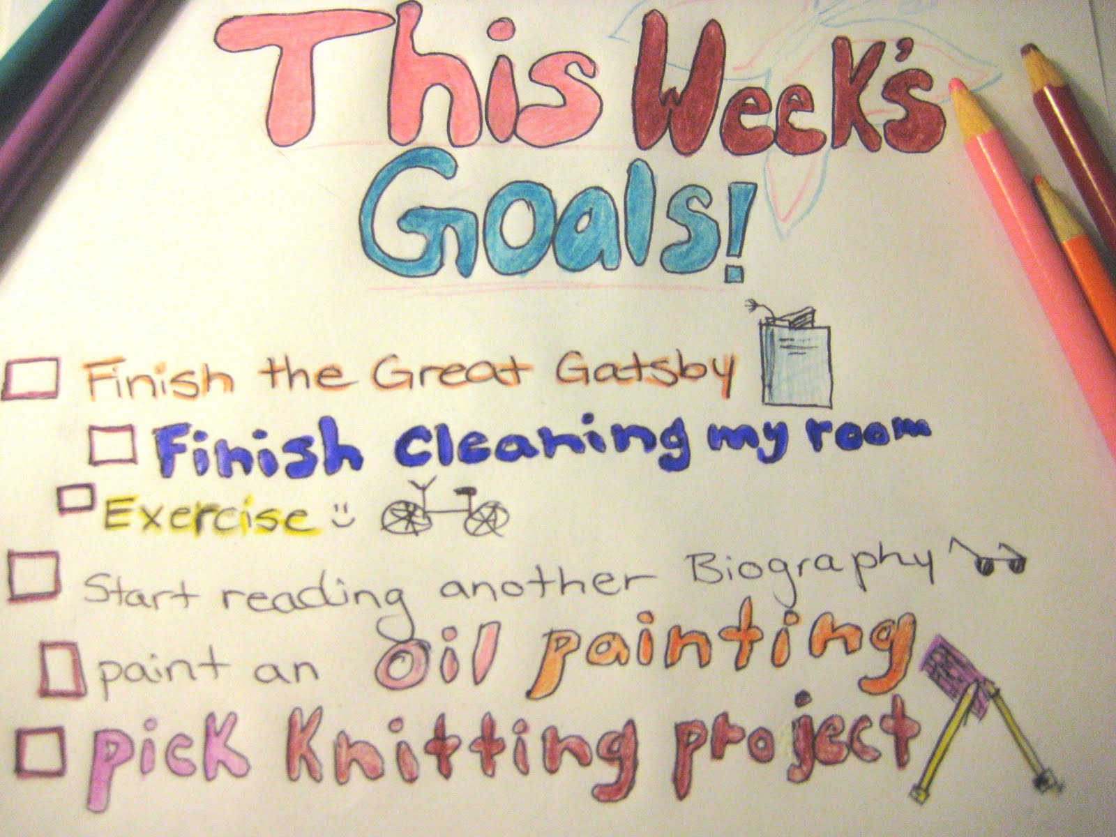 I will also be posting a picture of my list of goals for the week. Just a list of little things I'll be working towards this week, both creative and personal.