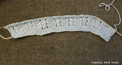 I started knitting a baby hat for baby and it is nice to be finally working on a knitting project for him. I found such a cute baby hat pattern on Ravelry called IONA Baby Hat by Marianna Mel. It is knitted on straight needles. I started knitting it in the round and noticed the pattern was off, so I switched to knitting on the needles instead of in the round. I am liking the pattern of the hat so far it looks nice. I chose the baby blue color for our baby boy I bought Snuggly Wuggly baby yarn by Loops & Threads in the colorway pal blue and knitting on 4 mm circular needles.
