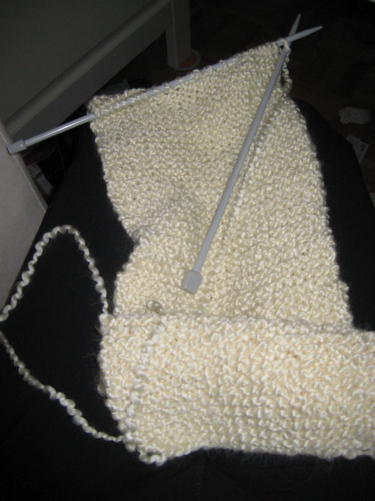 I am writing to update you on my knitting progress. I have been knitting the scarf slowly but surely. I have been knitting a little here and there while watching tv. I will be adding wooden buttons onto the pockets when I am done and I also have plans to make another one with bows. I will try to amp it up a bit to get it done soon!