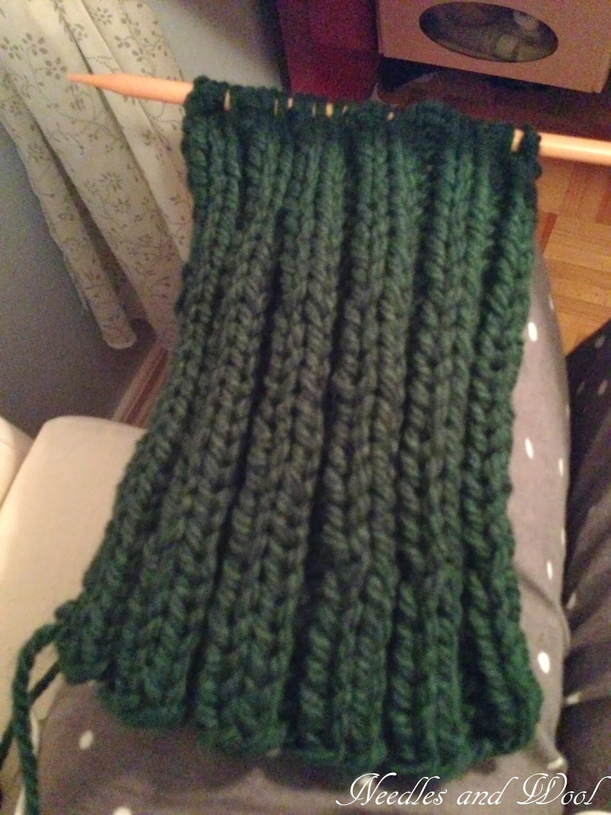 | Progress on the green infinity scarf! only 47 inches left to knit! |