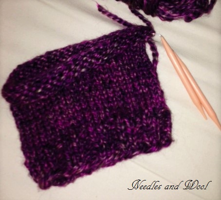Next row knit two stitches, then yarn over and purl two together. repeat four times, then knit two.