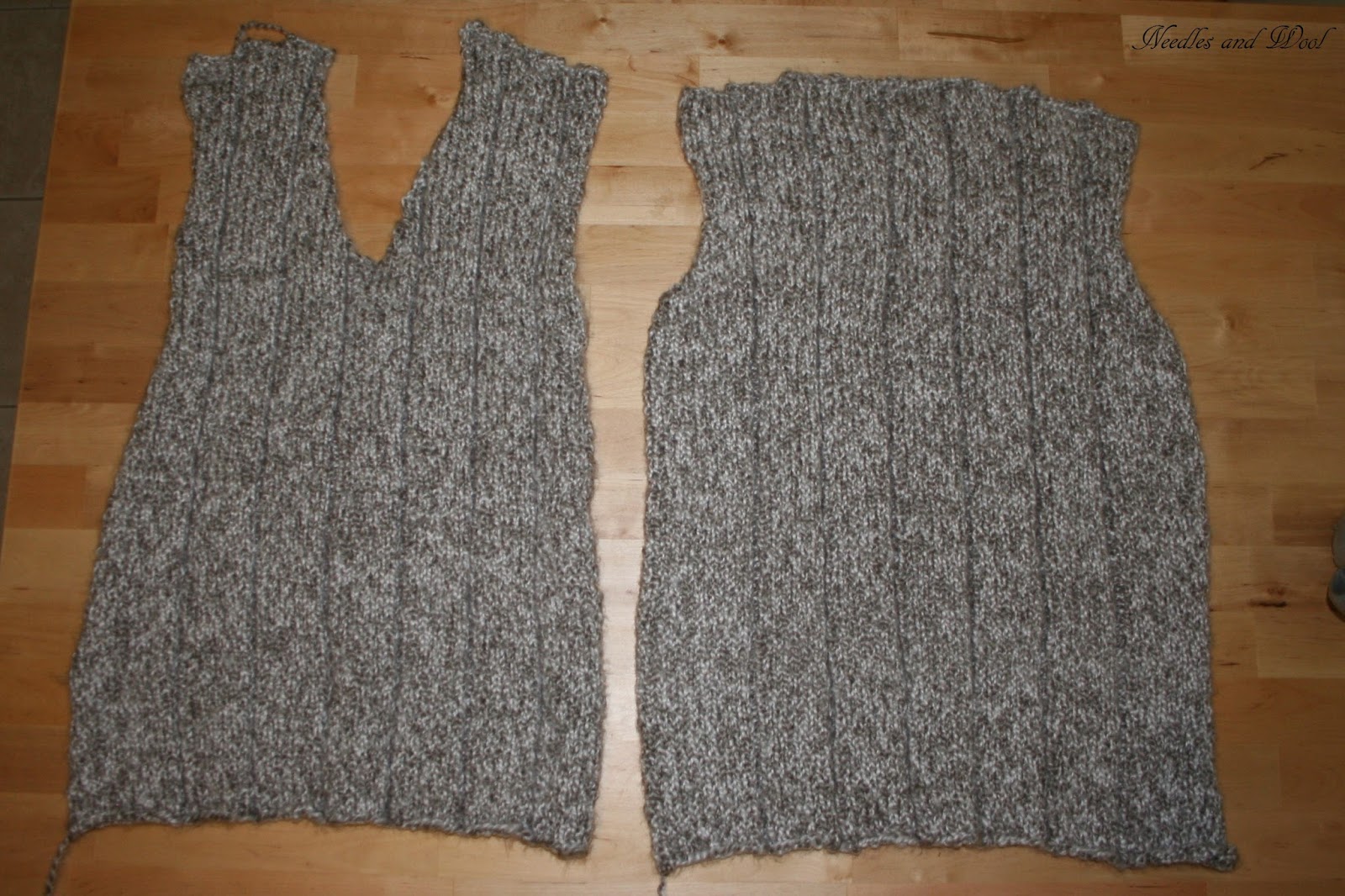 The sleeve piece looks so wide and huge, but when folded down the middle it looks like a decent size sleeve. I think there will be some extra material in the sleeve which will make it more comfortable. I am looking forward to seeing these pieces once they are blocked, they will look much larger than they do now.